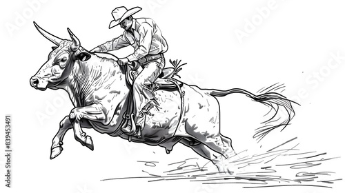 Continuous Line Sketch of Rodeo Rider on Bull in Action