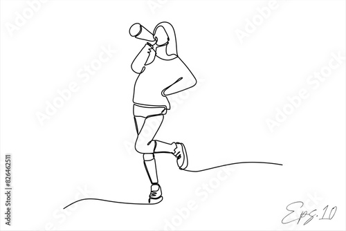 continuous line vector illustration of woman holding a loudspeaker