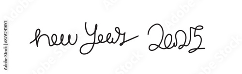 Continuous one line doodle drawing of new year 2025. Holiday concept, festive New year handwriting text, minimalist design.