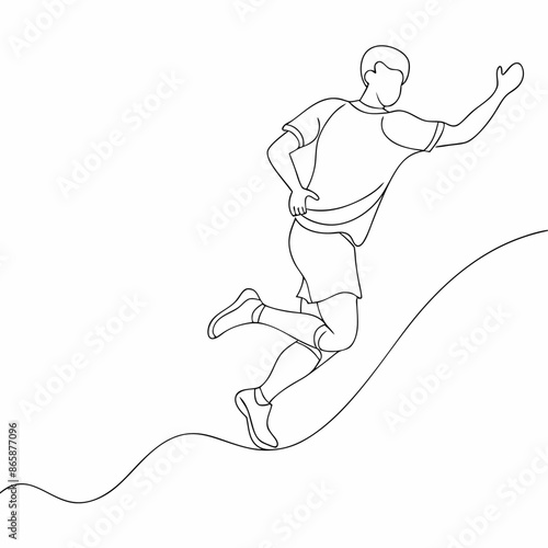 Continuous one line draw of young energetic football attacker kicking ball really hard to the goal (13)