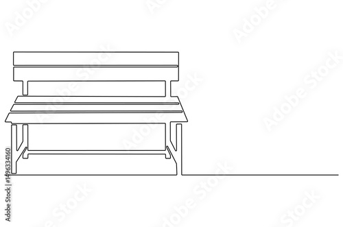 Continuous one line drawing of Bench In Park. Single line drawing illustration of Bench Park. Elegant street element and urban road concept vector art. Doodle line illustration.