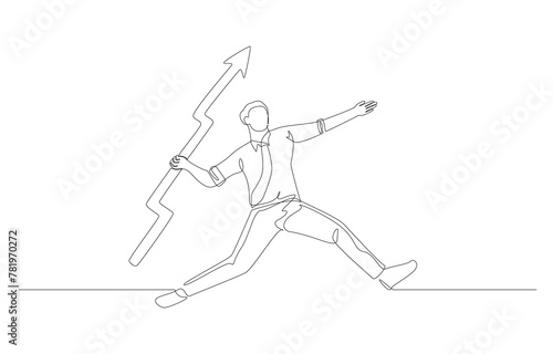 Continuous one line drawing of businessman throwing arrow into sky, business growth or sales increase concept, single line art.