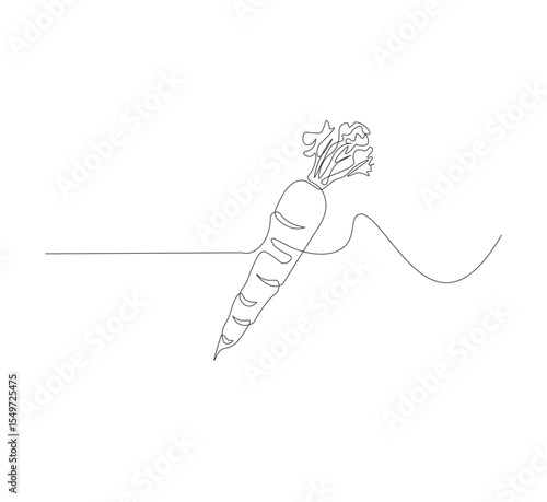Continuous one line drawing of carrot vegetable. One line drawing vector illustration of carrot plant. Editable outline.