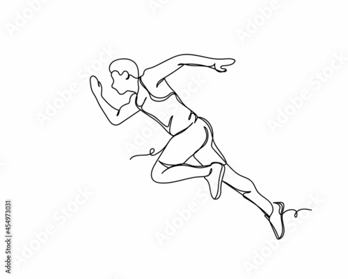 Continuous one line drawing of man sport athletics runner icon in silhouette on a white background. Linear stylized.