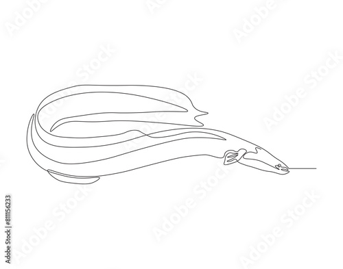 Continuous one line drawing of sea moray eel. One line drawing illustration of sea eel. Marine animal concept continuous line art. Editable outline.
