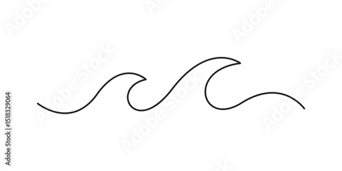 Continuous one line drawing of sea wave. Modern abstract seascape and concept for surf club in simple linear style. Doodle vector illustration