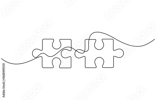 Continuous one line drawing of Two pieces of jigsaw minimalistic vector illustration. Editable outline