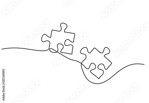 Continuous one line drawing of two pieces of jigsaw on white background.