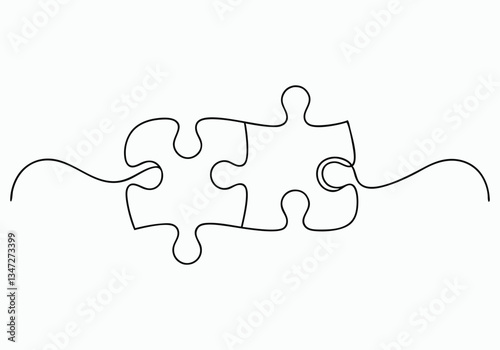 Continuous One Line Jigsaw Puzzle with Missing Piece | Minimalist Problem-Solving Vector Illustration
