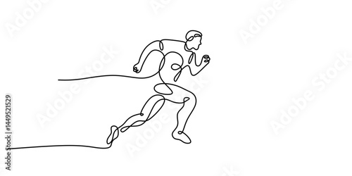 Continuous One Line Sprinting Man. Dynamic Motion Sport Speed Minimalist Vector Art.
