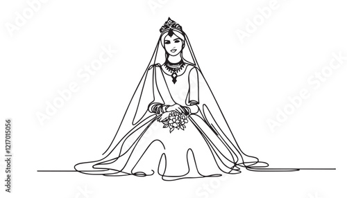 Continuous one single minimal line drawing bride