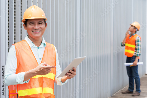 Contractor with a tablet