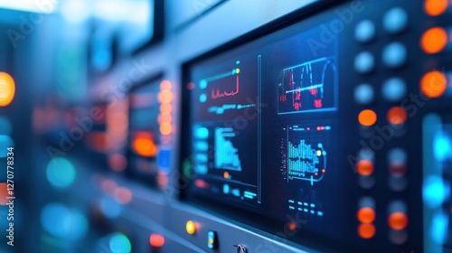 Control panel displays data; tech, industry, monitoring, background blurred