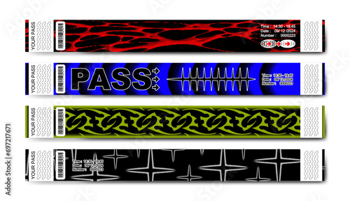 Control pass ticket in hand. Sticker for music concerts, events and parties. Grunge bitmap texture with pixel dither effect. Vector mockup