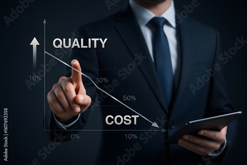 Control Quality and cost optimization for products or services to improve customer satisfaction, enhance company performance. Businessman touching concept. Successful corporate strategy, management.