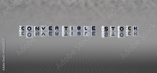 convertible stock word or concept represented by black and white letter cubes on a grey horizon background stretching to infinity