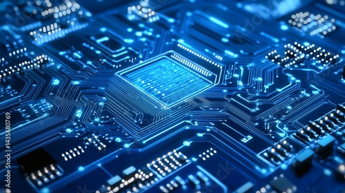 Cool blue tech background featuring woven circuits and illuminated hexagonal grids
