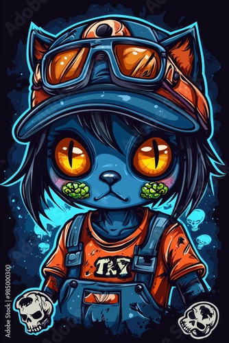 Cool Cat with Goggles and Cap