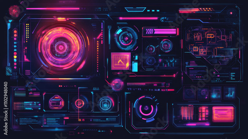 Cool tech banners and logos with abstract designs. A futuristic, cyberpunk style vector illustration.