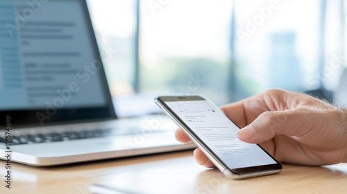 Coping with Job Rejection - Close-up of Phone Displaying Rejection Email with Disappointed Hand on Desk, Resilience Concept in Soft Focus Background Photo