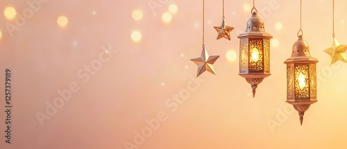 Copy Space Background of Ramadhan with Gold Lantern and Star