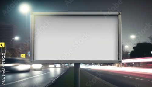 Copy space of white billboard with traffic bokeh light road abstract background. Generative ai