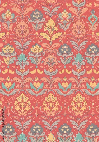 Coral Damask Floral Pattern Seamless Repeat Texture