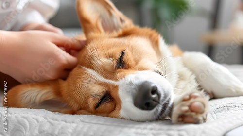 Corgi Dog Getting Its Nails Trimmed While Relaxing