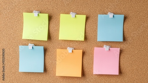 Corkboard with Blank Sticky Notes, a versatile organizational tool for jotting down ideas, reminders, and notes, creating a clutter-free workspace for creativity and planning
