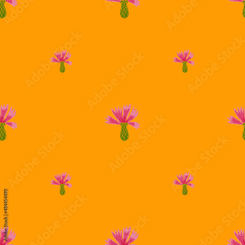 Cornflowers pattern seamless in freehand style. Spring flowers on colorful background. Vector illustration for textile.