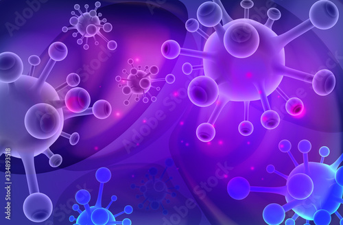 Corona virus disease COVID-19. Microscopic view of a infectious virus. 3D Rendering
