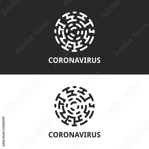 Coronavirus logo cell silhouette, virus or antivirus logotype mockup, black and white modern lineart print t-shirt