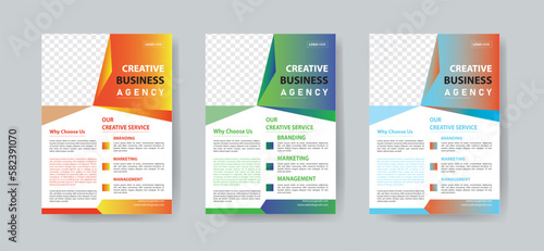 Corporate business flyer template design set with blue, orange, red and yellow color. marketing, business proposal, promotion, advertise, publication,