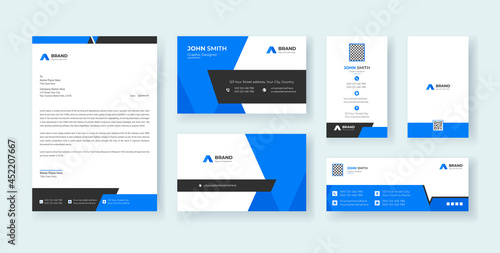 Corporate Business Identity Stationery Set for Minimal Branding Identity Template.Editable Business card, ID card, Letterhead, Invoice, Envelope, Brand Identity Print Design Premium Vector.