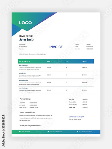 Corporate business invoice design for accountants vector template