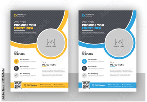 Corporate business multipurpose flyer design and brochure cover page design template with creative and minimal shapes in a4 size vector format