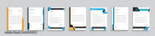 corporate letterhead design template bundle, minimalistic business letterhead template, company stationery design, yellow & blue color letterhead, professional letterhead flyer, a4 letterhead design