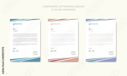Corporate modern business letterhead in abstract design with 3 color theme variation