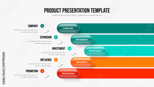 Corporate Planning Five Element Diagram Slide Design. Enterprise Forecast Presentation Layout Vector Illustration. Modern Overview 5 Option Infographic Slideshow Template.