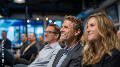 Corporate professionals attending business presentation event