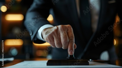 Corporate Seal of Approval Professional Hand Stamping Document in Closeup Shot Business Legal and Administrative Concept