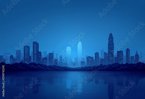 Corporate Skyline Background with Deep Blue Tone