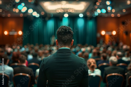Corporate training session with an expert addressing a room full of employees