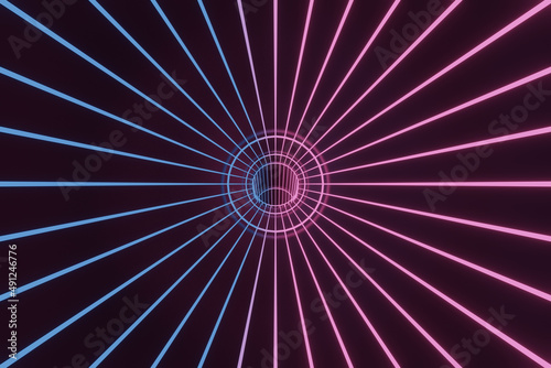 Corridor with blue and pink lighting, 3d rendering
