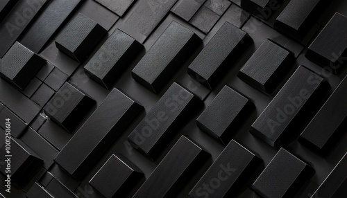 Corrugated rectangle cubes 3d geometric dark black anthracite stone concrete texture background panorama banner long