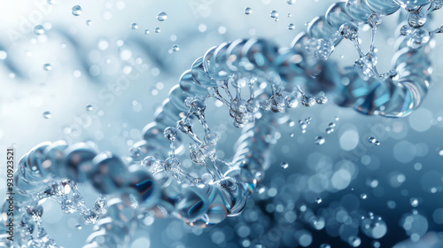 Cosmetic Essence, Liquid bubble, Molecule inside Liquid Bubble on DNA water splash background