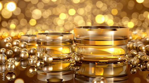 Cosmetic product ad with transparent circle disks, concept of light textured and moisturizing face cream