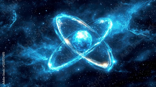 Cosmic Atom: A mesmerizing fusion of space, energy, and quantum physics. Explore the vibrant universe within this abstract artwork.