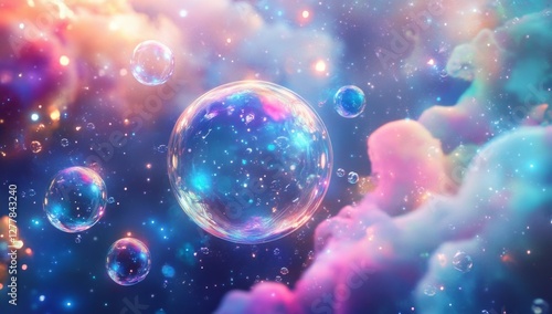 Cosmic Bubbles Floating in Nebula, Fantasy Background, Digital Art