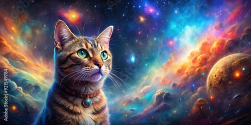 Cosmic cat art featuring a mesmerizing stellar background, space, cat, art, cosmic, stars, galaxy, universe, celestial